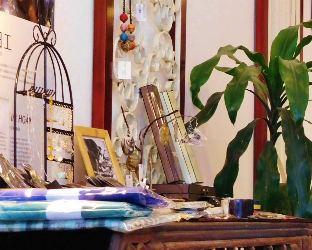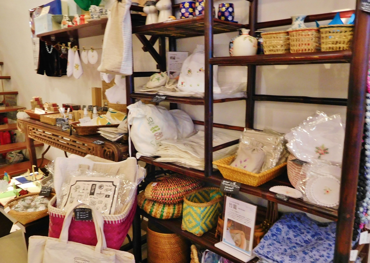 価格は高めですが、お洒落なアクセサリーやバッチャン焼きの器、トートバックや手刺繍の巾着、コスメ等、たくさんの雑貨が販売されていました。