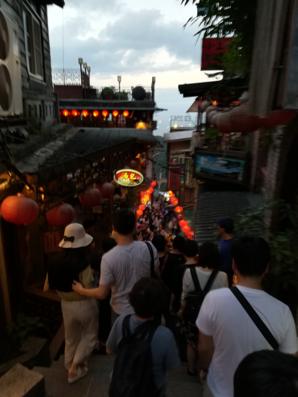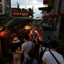 長い階段が続く道です。千と千尋の撮影ポイントに行くにはここを通ります。道幅も狭いので夕方提灯が灯ると身動きがとり辛くなります。提灯に明かりが灯ったら混み合う前に撮影してその場所から離れる方がいいです。あいにく、私たちが行った日は雨が降らなかったので良かったですが、雨が降っていると傘はさせないと思います。また滑りそうで怖いかな