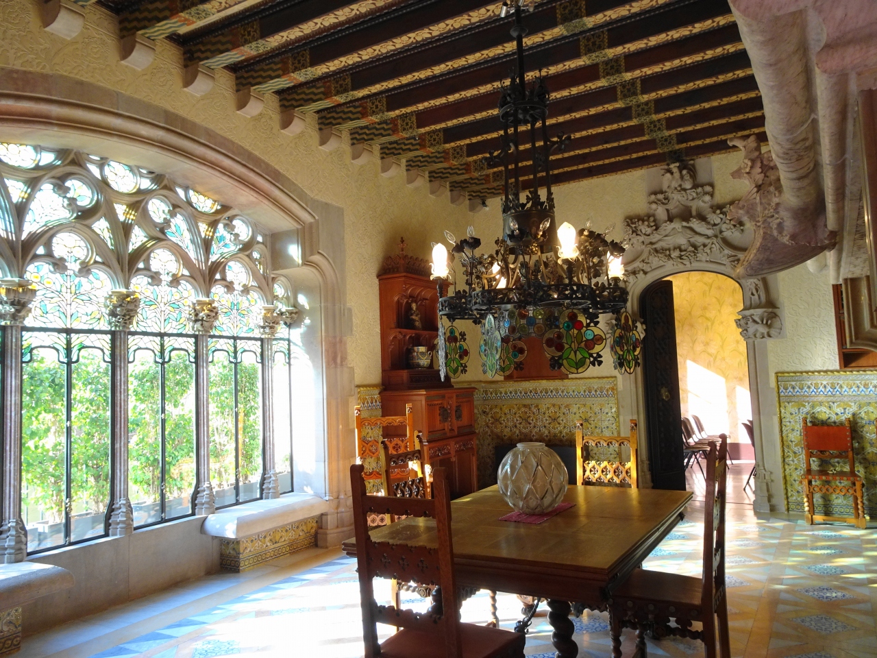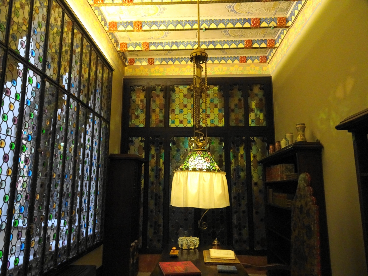見学前に床に傷がつかないようにビニールの靴カバーを渡されます。ビデオガイドなのでガイドなしで一人でまわるのかなと思っていたのですが、受付の子が最後まで案内してくれました。私と外国人の計2名の参加です。英語ガイドでした。部屋の装飾やステンドグラスの美しさ、天井までかわいらしいく見ててため息が出ます。結局40分以上見学して最後は1階のカフェでチョコレートを1個頂きました。