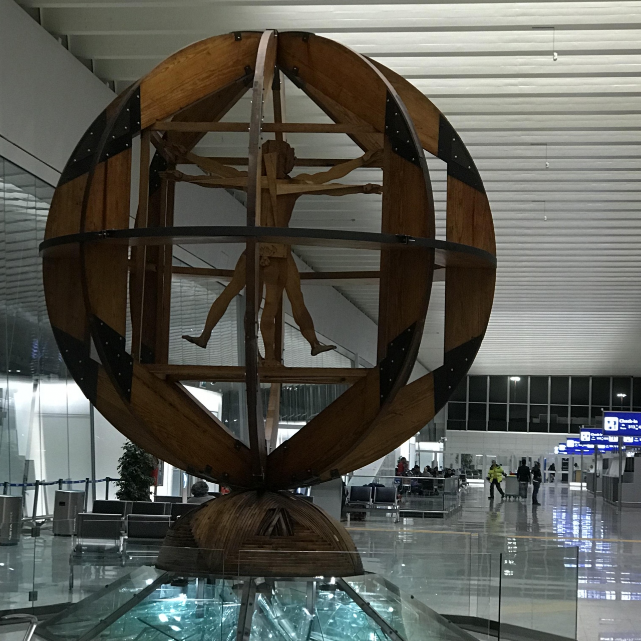 空港入ってすぐに、ダヴィンチのあの有名なスケッチのやつを木で作ったモニュメントが!
