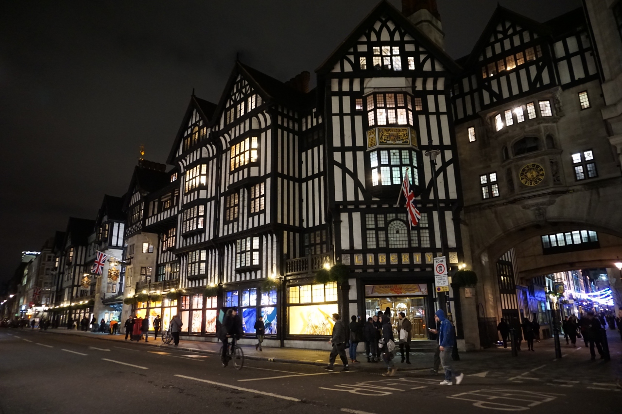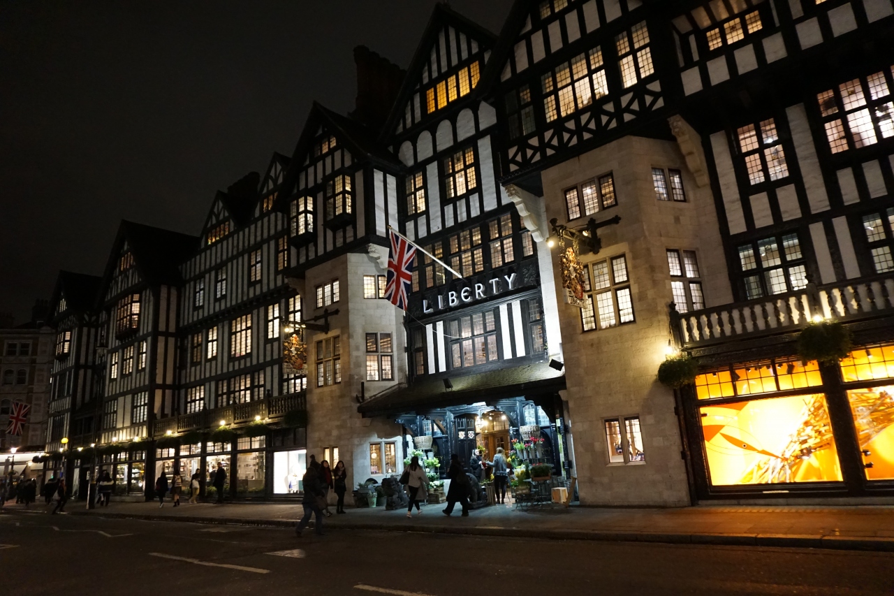 「リバティ柄」とか「リバティプリント」と言われる高級生地と、木組みを多用したテューダー様式の建築で有名な百貨店です。