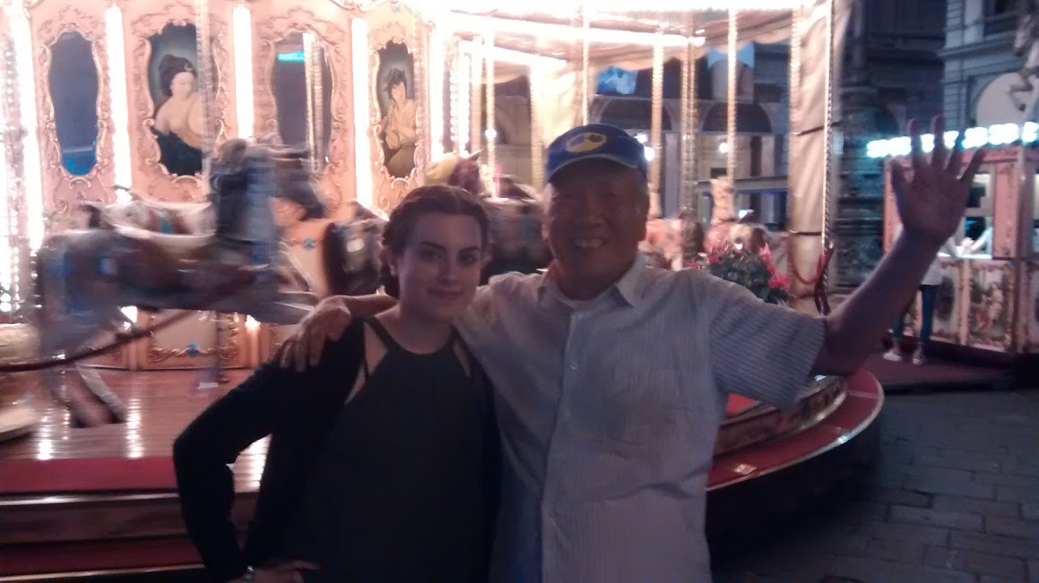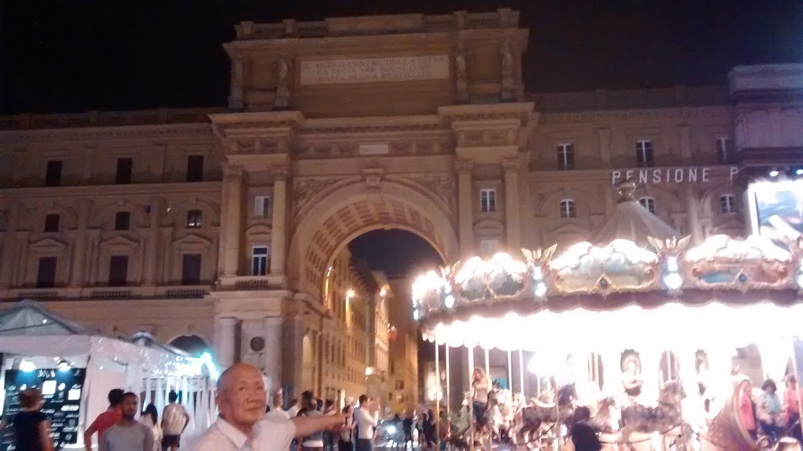 レプッブリカ広場には、凱正門っぽい建築があり、メリーゴーランドがあり、広場の周りにはカフェ・レストランがあり、人がすごく多かったでした、夜もライトアップされてたいへんきれいでした。僕の好みのイタリア美人のおねえさんと写真を撮っちゃった!