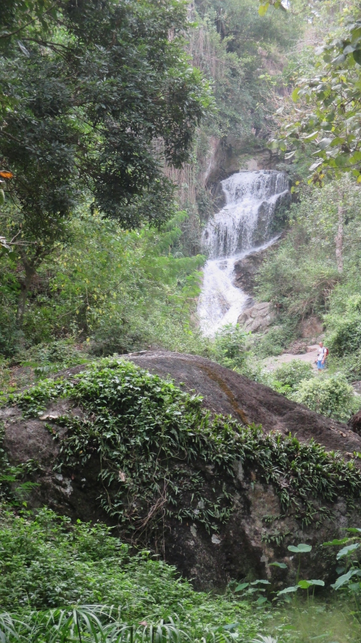 滝へ行く入り口でバイクを駐めました。バイクを駐めるところはお土産屋が並んでいます。どの観光地でもある傾向ですが、屋台が並ぶエリアの方が目的のエリアより広いです。。。滝は水が澄んでいてきれいでした。ピクニックしている人々を見かけました。足場が危ない場所が多いので、しっかりと靴で行くと良いです。