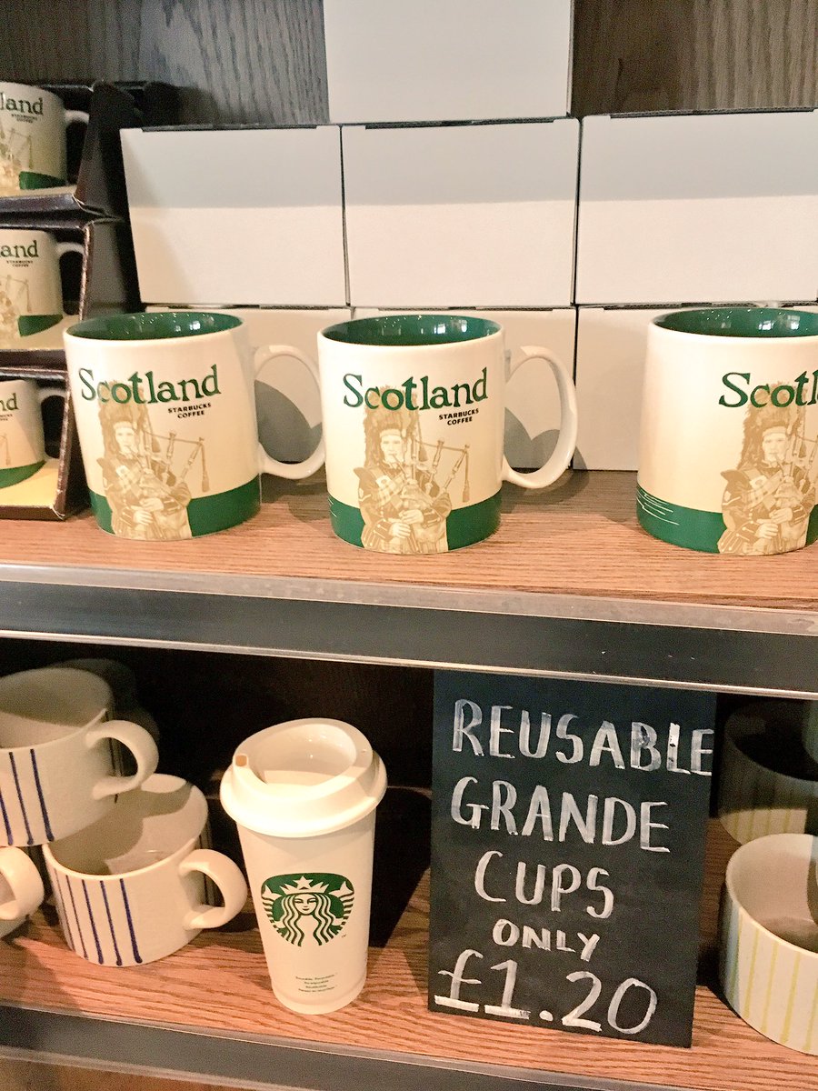 日本よりは値段も高いですが、落ち着いて座れる客層とサービスでよかったです。スコットランドのオリジナルのグラスなども売っていましたが、スコットランド以外の他のお店でもあるので、スケジュールを考えて買い物をしたほうがいいかも。あと、こちらでは飲み終わったあとのカップは自分で下げないでいいので、そのまま座席において帰るようになっていました。