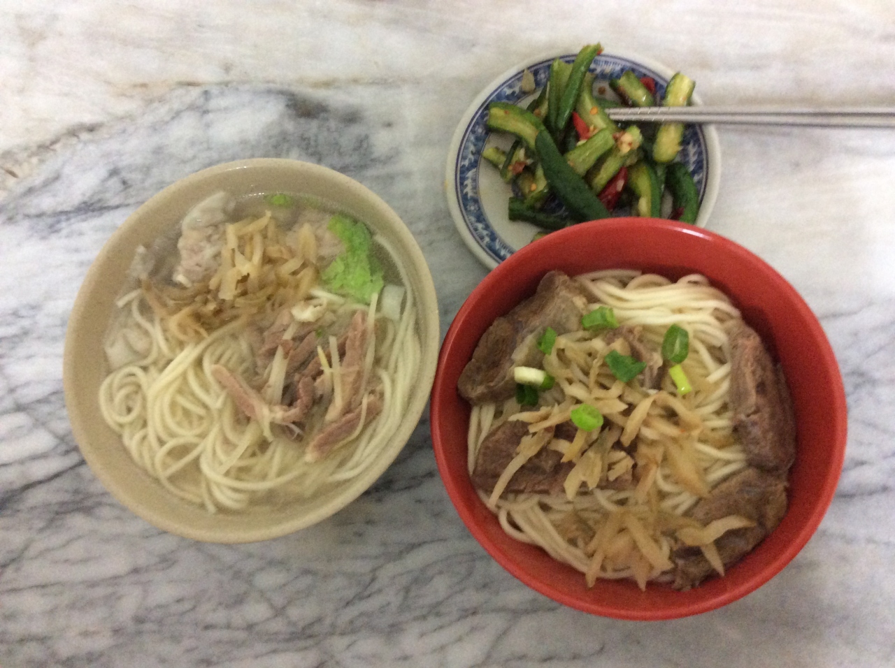 私はやはり有名なワンタン麺ときうりの漬けもの風をいただきました