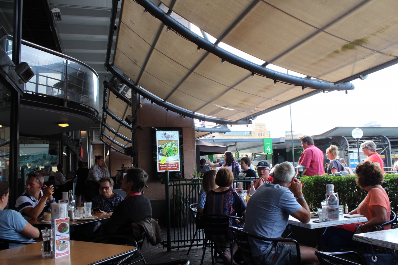 サーキュラーキー埠頭の真ん前で豪華客船がみえて、おおぜいの観光客が行きかう場所にお店はあります。外の席で食べたのですが、とても賑やかな、そして周りは海外の人たちばかりです。たっぷりと外国の雰囲気を味わうことができます。