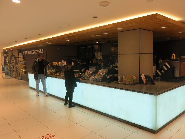 ユニクロの2階にあって、休憩に便利。入口はいってエスカレータの裏、階段を登るとすぐにあります。