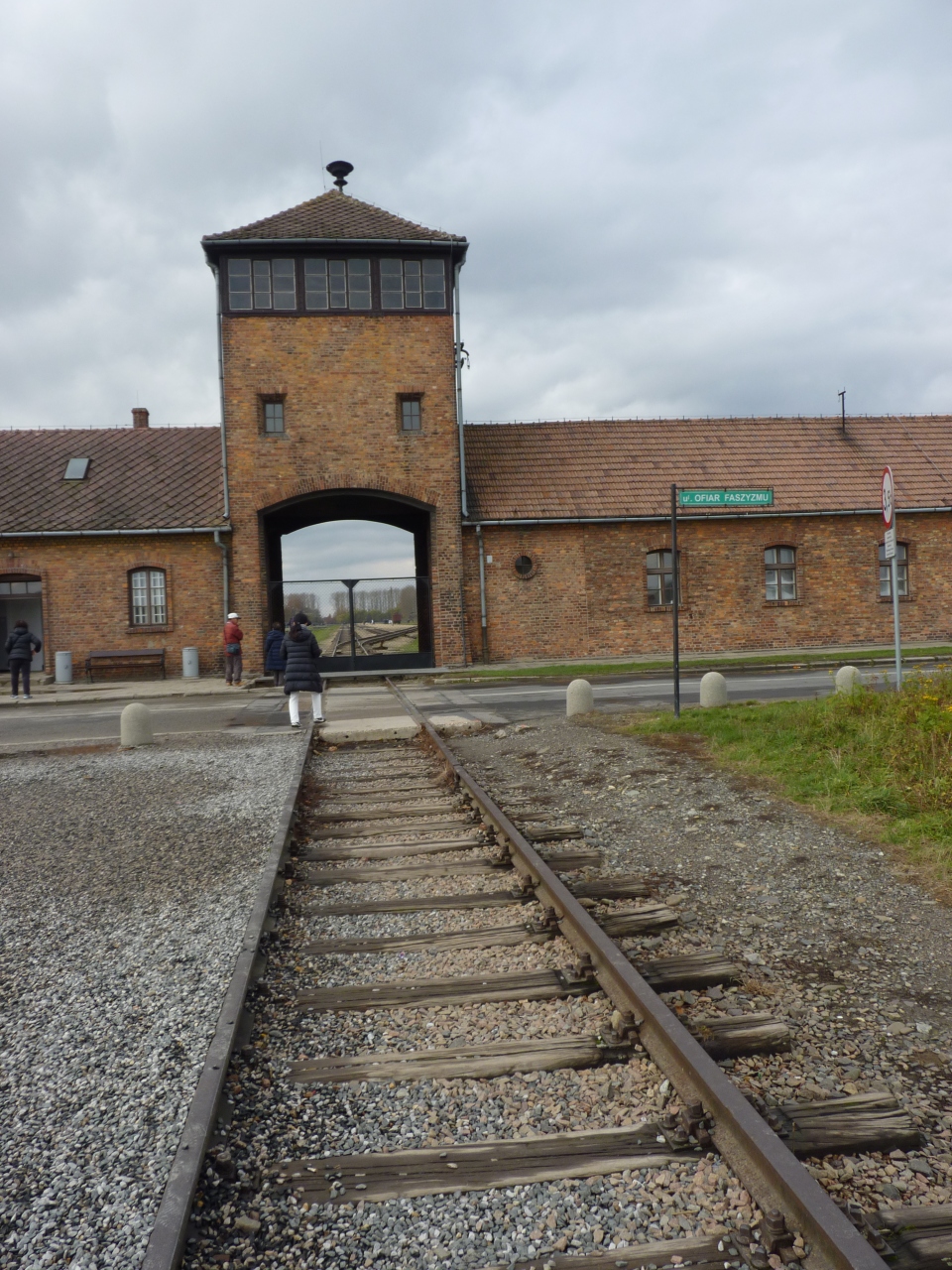 アウシュヴィッツ強制収容所から約2kmほど離れたところにある。バスを駐車場で折200mほど歩くとオシフイエンチム駅から続くレールの終着点になっているビルケナウに着く。広大な面積は1、4k㎡に300棟以上のバラックが立ち並び一部が再現されている一大殺人工場であった。一部が開放され中を見学することが出来る。