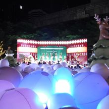 東側の広場に巨大なクリスマスツリーやステージで演奏しているトナカイたち、サンタクロースやシロクマなどの飾りつけがされていました。その周りでは多くの人が見物したり、写真を撮ったりしていて、いよいよクリスマスシーズンが近づいてきたという実感がわきました。