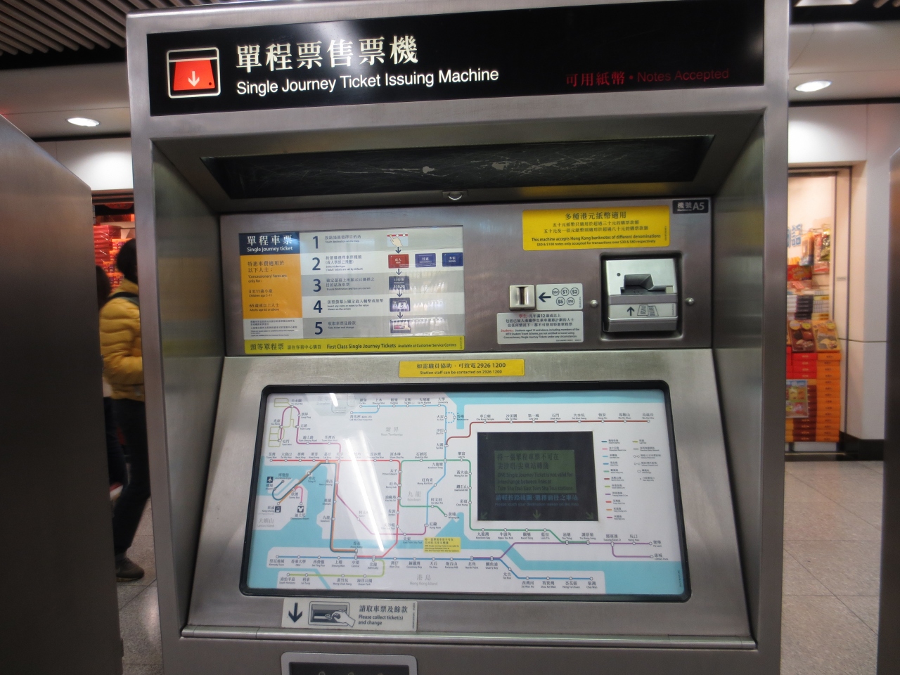観光の移動には全て地下鉄を利用しました。滞在期間が短かったため、その都度単票切符を購入しました。切符は買いやすいし、路線ごとの色分けによって乗車するときの通路もその色分けでわかりやすいです。料金は、初乗りが大人4.5香港ドルですので安いです。