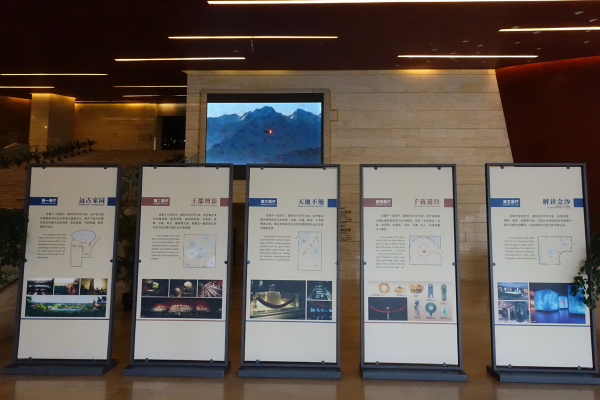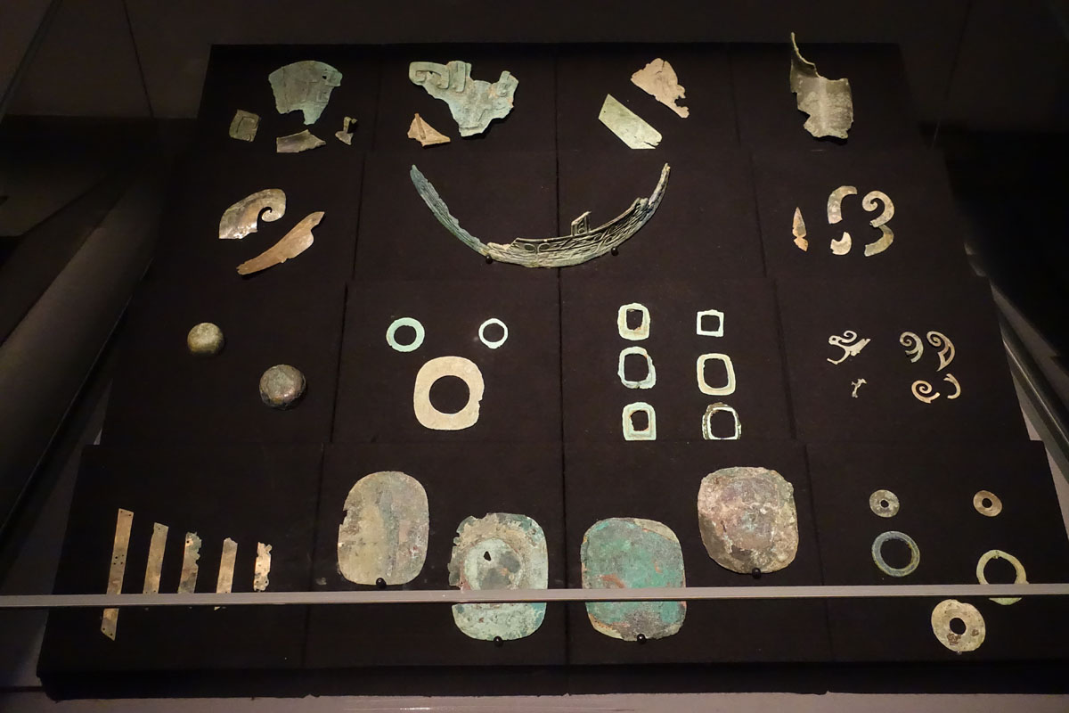博物館内は5つのテーマ(時代)に分類された展示室があります。先史時代の石器、象牙、土器などから青銅器、鉄器、漆器、玉器、金銀細工などなど、膨大な発掘物が展示されています。成都というと三国時代の蜀の首都というイメージがほとんどだったのですが、それ以前も以降も四川地方の文明・文化の中心であり、三国時代の蜀はその歴史の一部ということをあらためて知る機会となりました。