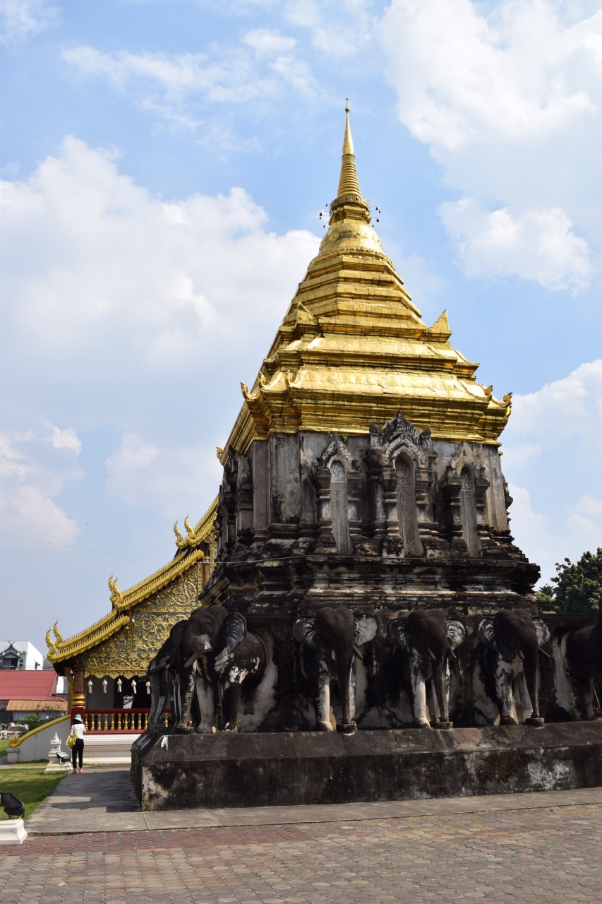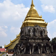 15頭のゾウが支える金色の塔に寺院の装飾など見ごたえがある寺院である。