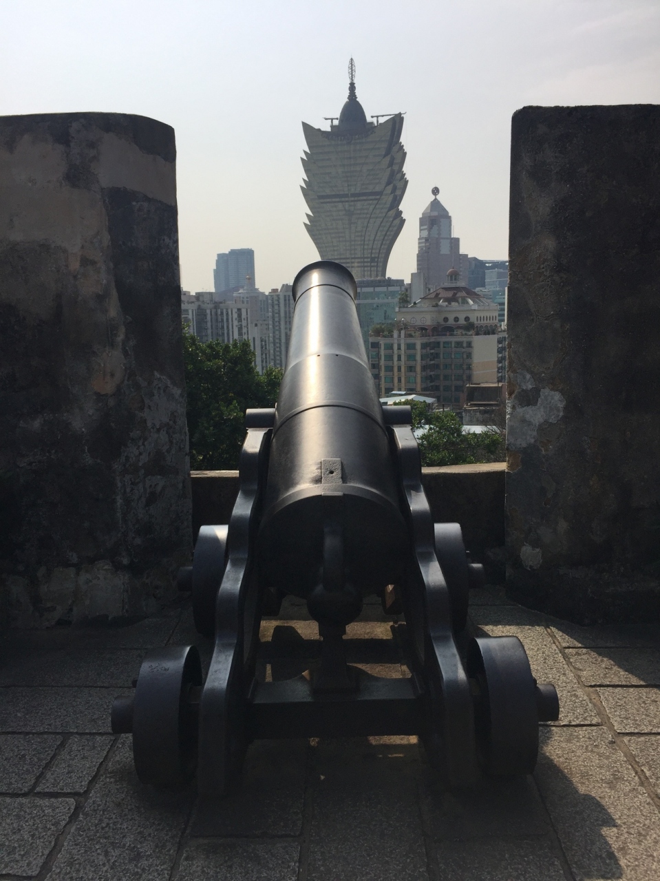 砲台が何台もあり正面の砲台はグランドリスボアホテルに向いてます。