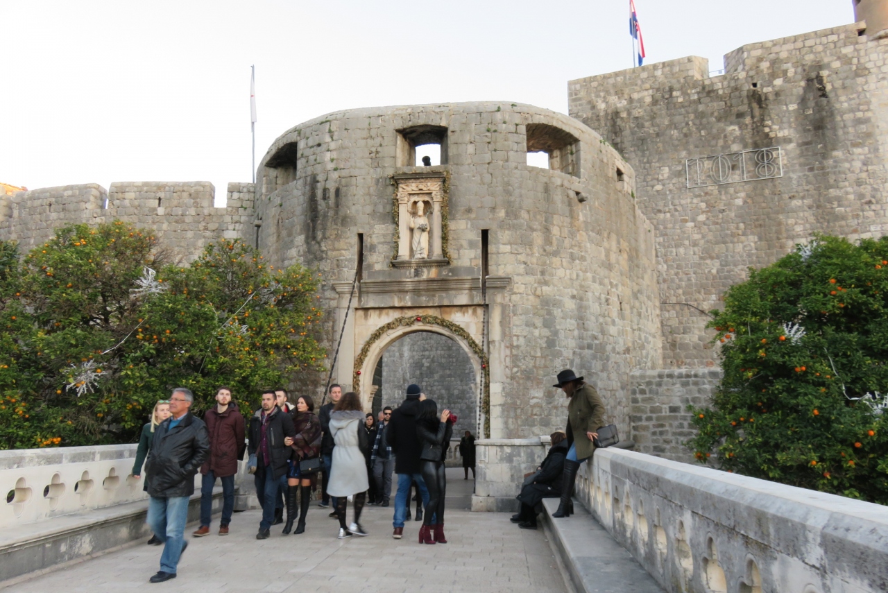 市内バスを降りてこの石橋を渡り、ピレ門をくぐって旧市街に入る人がほとんどだと思います。なので1日中、観光客が大勢います。入江が見え、近くにはオレンジの木もあり、ドブロブニク観光への期待が高まる橋だと思います。