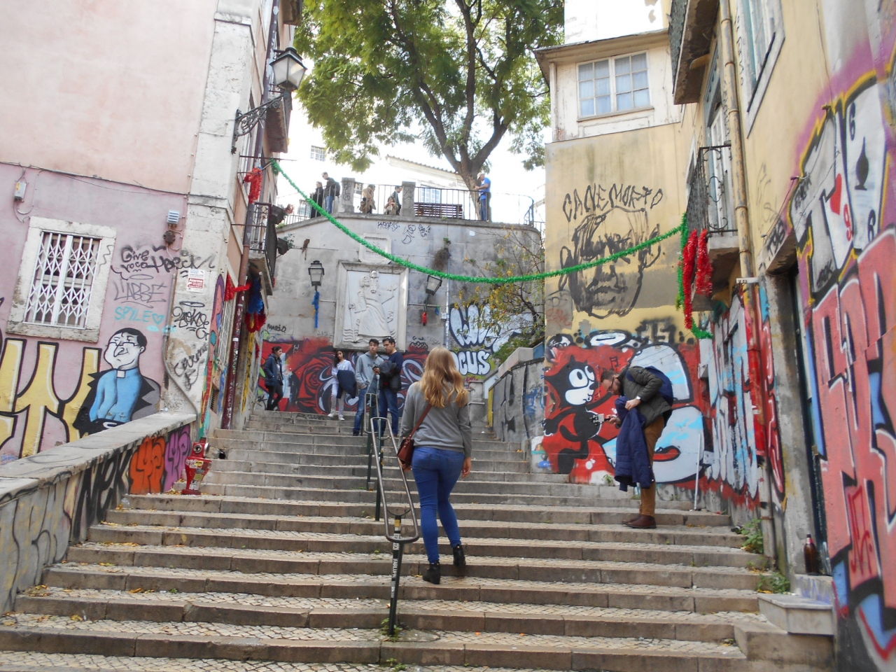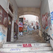「フィゲイラ広場」から少し南下して、東にある「サン・ジョルジェ城」へ向かって登る階段のうちの一つです。