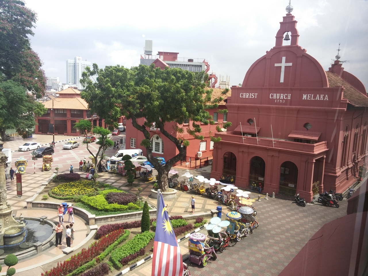 マラッカといえばこちらの赤いキリスト教会が思い浮かぶマラッカのシンボル的な存在。目の前の広場はいつも人でいっぱい。デコの楽しいトライショーと呼ばれる人力車ならぬ自転車力車が並び、観光客に声をかけつづけます。正面ではなく左にある入り口から入ります。ステンドグラスが美しい。外の喧騒から隔絶され、静かな空間に身を置くと、交易、侵略、観光とマラッカの辿ってきた歴史を感じます