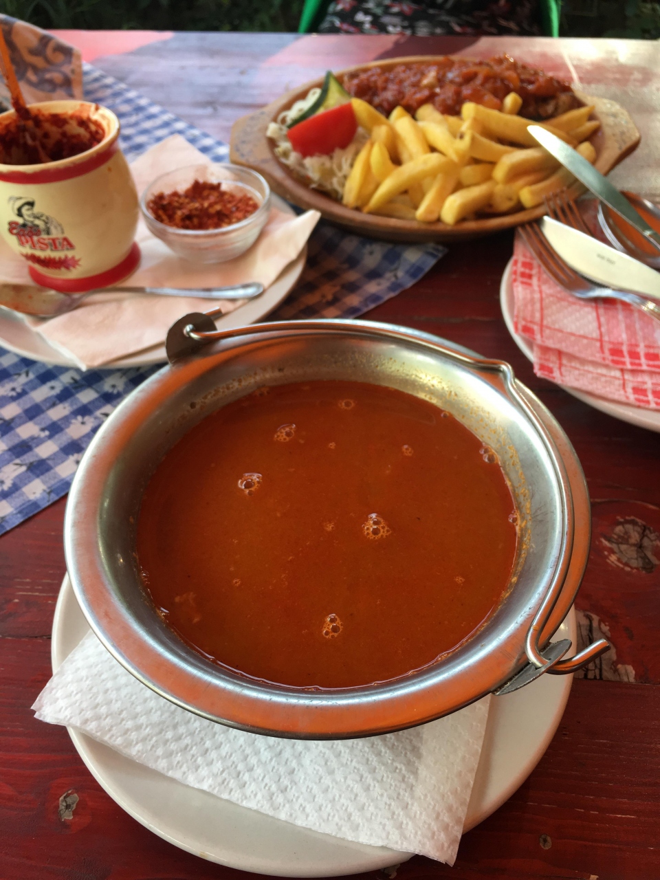 入り口に料理の写真をいっぱい貼っていて美味しそうだったこちらを選択。ハンガリーで有名なグヤーシュを頂きました。シンプルながらも間違いないお味で、パンと一緒に美味しく頂きました。