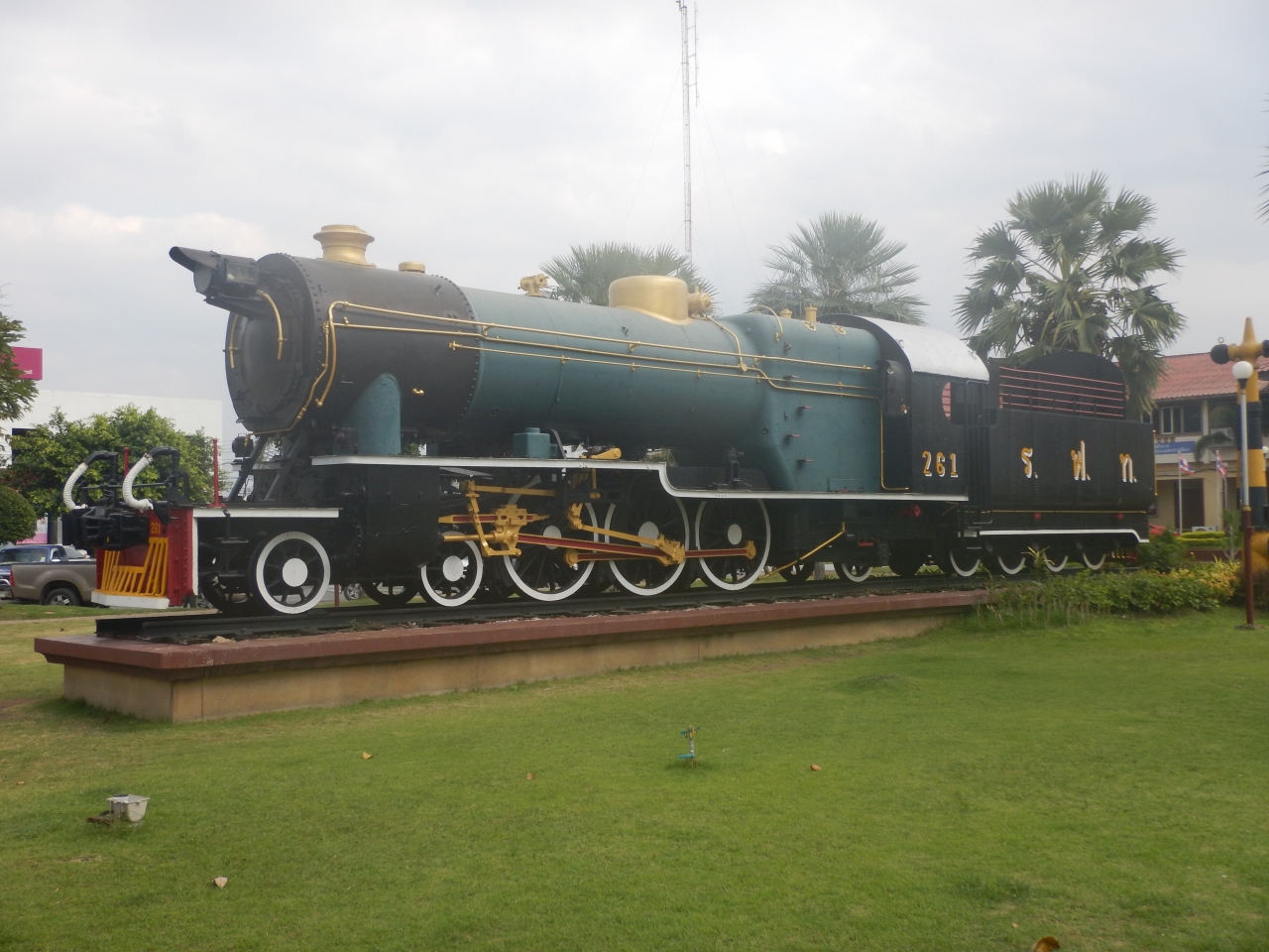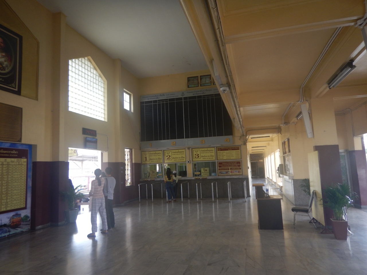 宿からナコーンラチャシーマー駅に向かって歩いてみたら、15分ほどで着いた。駅前広場には蒸気機関車が保存されている。駅舎の中に入ってみるとチケット売り場と案内所があった。翌日列車でバンコクに移動するつもりだったので案内所で3等車の料金を聞いてみたら200バーツとの回答だった。英語が通じ、割と感じがよかった。