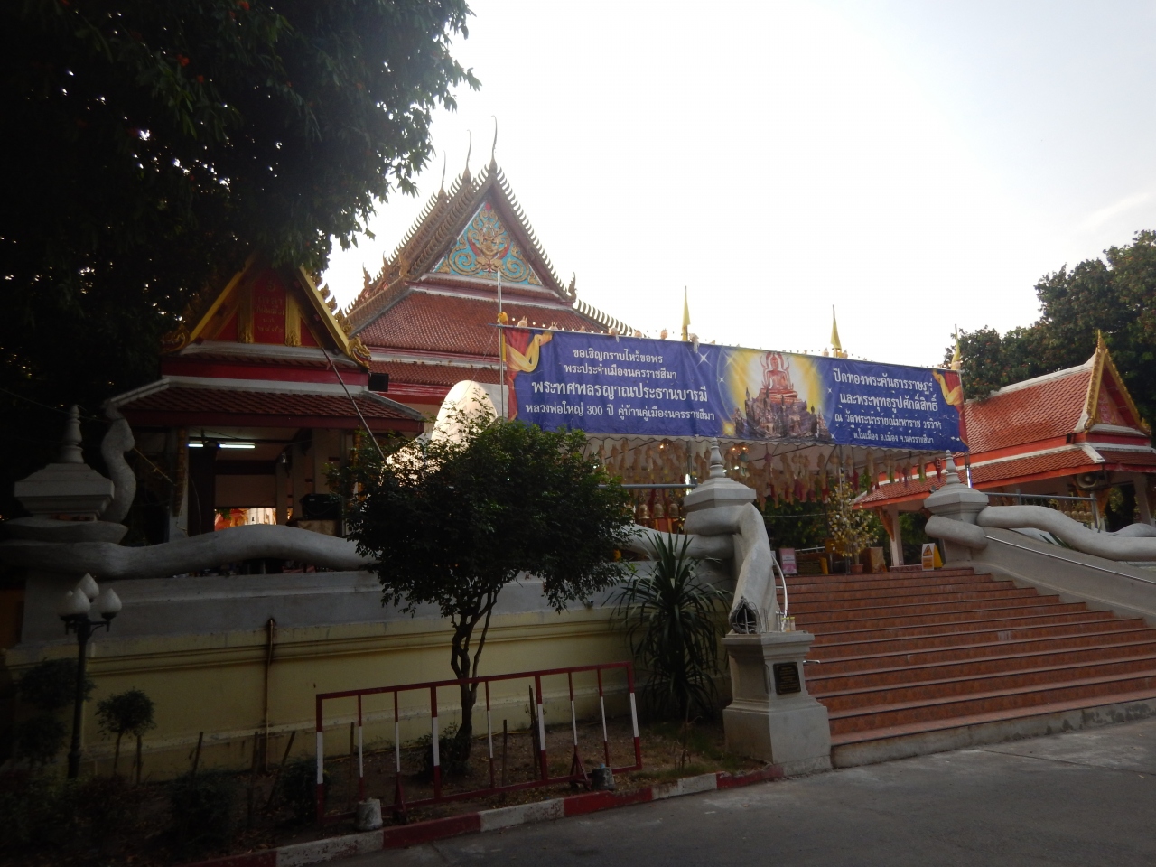 旧市街の中心部にある大きな寺院。本堂の中には入れなかったので見ることができなかったが、クメール様式の有名な仏像があるそうだ。この寺の南西の角にラク・ムアン(町の柱)がある。そちらの方が印象に残っている。