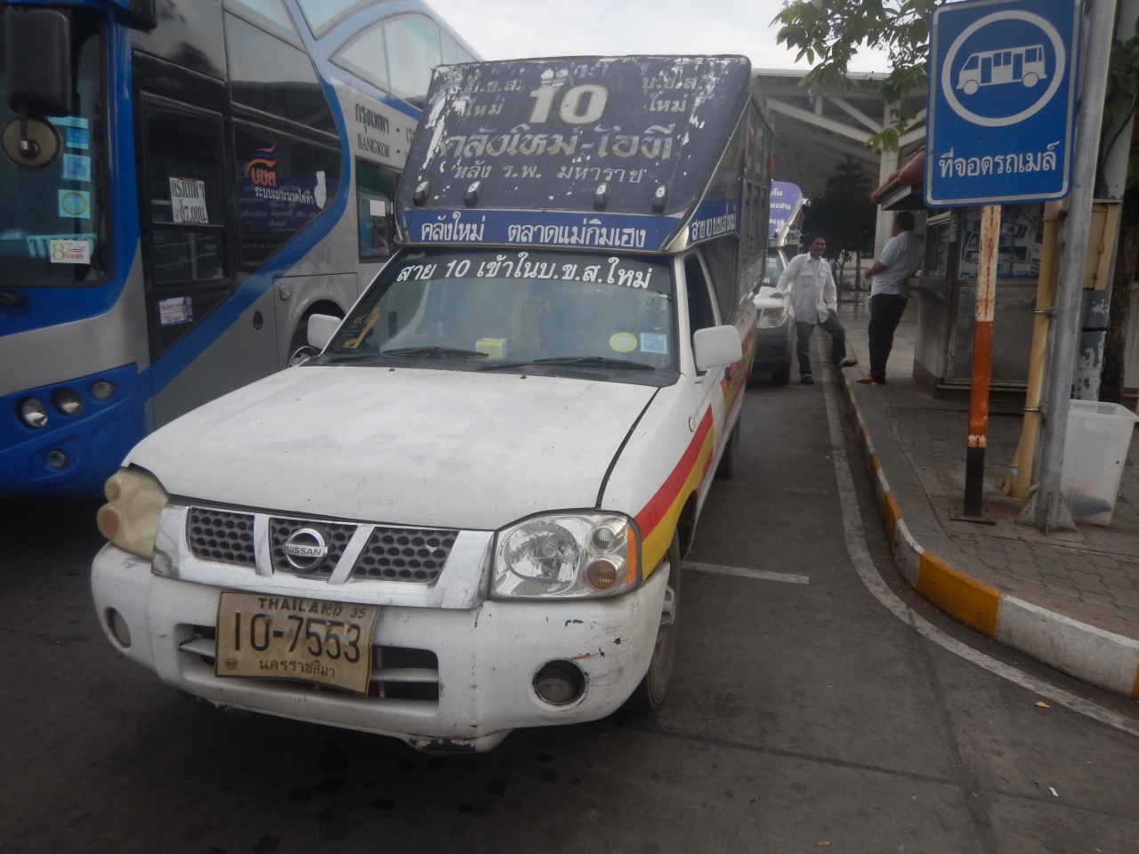 新バスターミナルに着いたが、方向感覚がないので、地図を見ながらバスターミナルからターミナル21まで乗ってみようと思い、ソンテウに行先を言う。そうすると、あっちのソンテウが行くと指差しで教えてもらう。乗車前に料金10バーツを払う。新バスターミナルからターミナル21までは1km程度の距離ですぐ着いた。