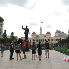美しい建物の内部には入れないので外観を眺めるだけになりますが,地下鉄の建設に伴ってグエンフエ通りが改修され,目の前に立つホーチミン像の周辺が公園のように整備されたこともあって絶好の撮影スポットになっています。