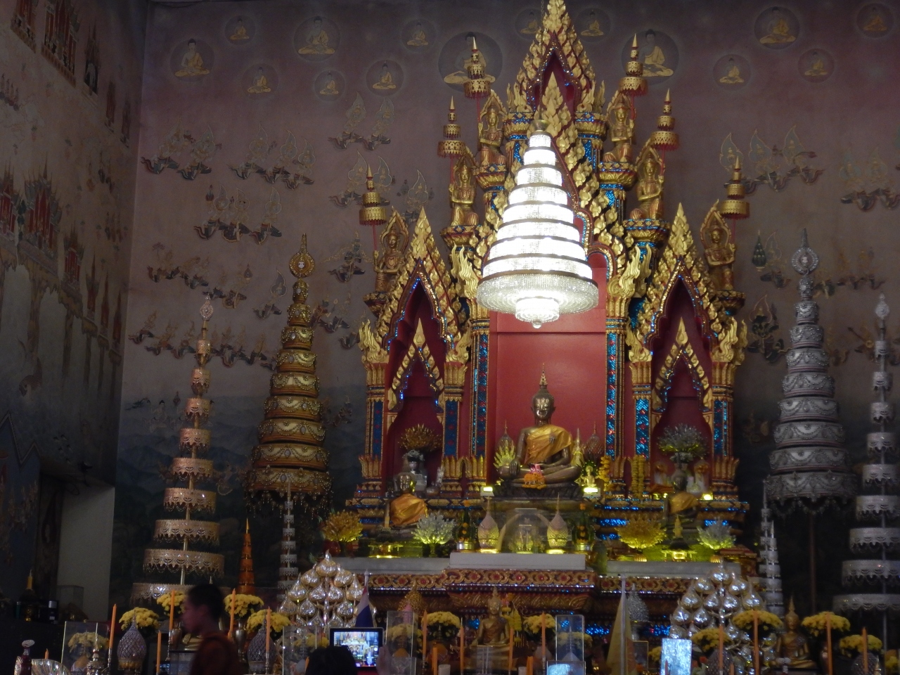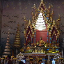 バスターミナル近くにある寺院。本堂はかなりの高さがある。その中の仏像を見ると意外にも小さかった。その仏像はメコン川に沈んでいたものを漁師が偶然引き上げたと伝えられている。人気がある寺院のようで、私が行った時もお参りしている人が大勢いた。