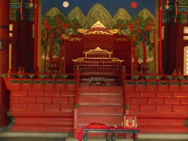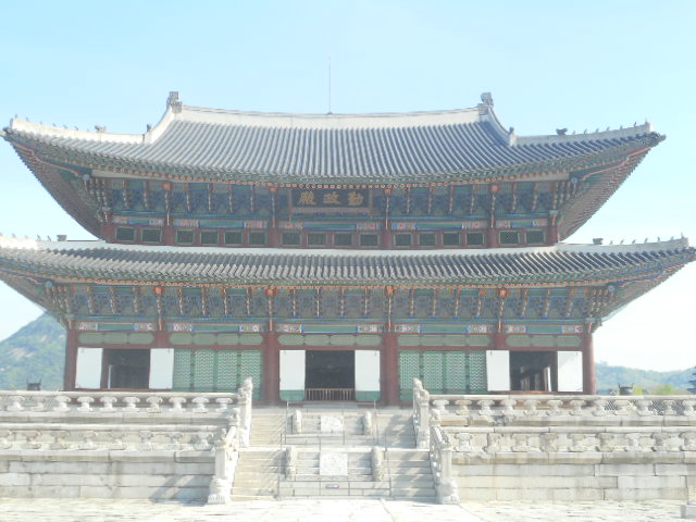 風水都市のパワースポットが絶大と言われているの世界遺産の”景福宮”で、王が政治を執り行ったのが”勤政殿”です。”勤政殿”内には王座の背後に描かれている”日月五岳図”は強い意志のパワーを感じるそうで”勤政殿”に上がる石の階段の真中は王のみが通れたそうです。