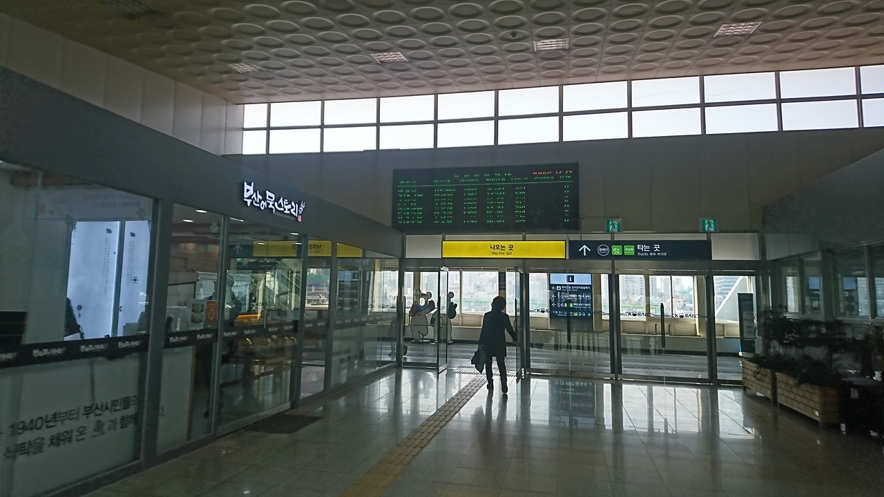 釜山第2のターミナル駅で、KTXや京釜線以外の中長距離列車の始発駅。また、2016年末に開業した広域電鉄東海線の始発駅です。釜田市場の横にある駅で、西面の隣にしてはかなり地味な駅。駅構内には売店やお土産屋さんがたくさんあるわけでもなく、釜山駅のようにお迎えの方が多数待っているという雰囲気もないです。韓国は寒いので、JR北海道の駅のように防寒はしっかりしています。広域電鉄の駅は新しいホームで、将来はこちらがメインになるのかなぁと思いました。
