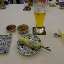 前菜として「生春巻」なども出されたのですが,別料金とはなるもののよく冷えた生ビールが最高でした。…特に,ベンタイン市場での買物時間の後だったので。