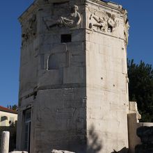 ローマン・アゴラの中に残る塔で外壁には彫刻も見られます。