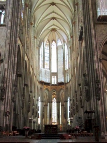 ケルン中央駅を出ると駅前にそびえる大聖堂の大きさに圧倒され、聖堂の中に入ると祭壇や多くのステンドグラスの美しさに圧倒されます。