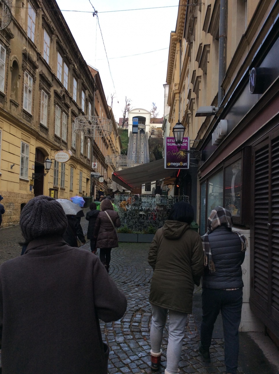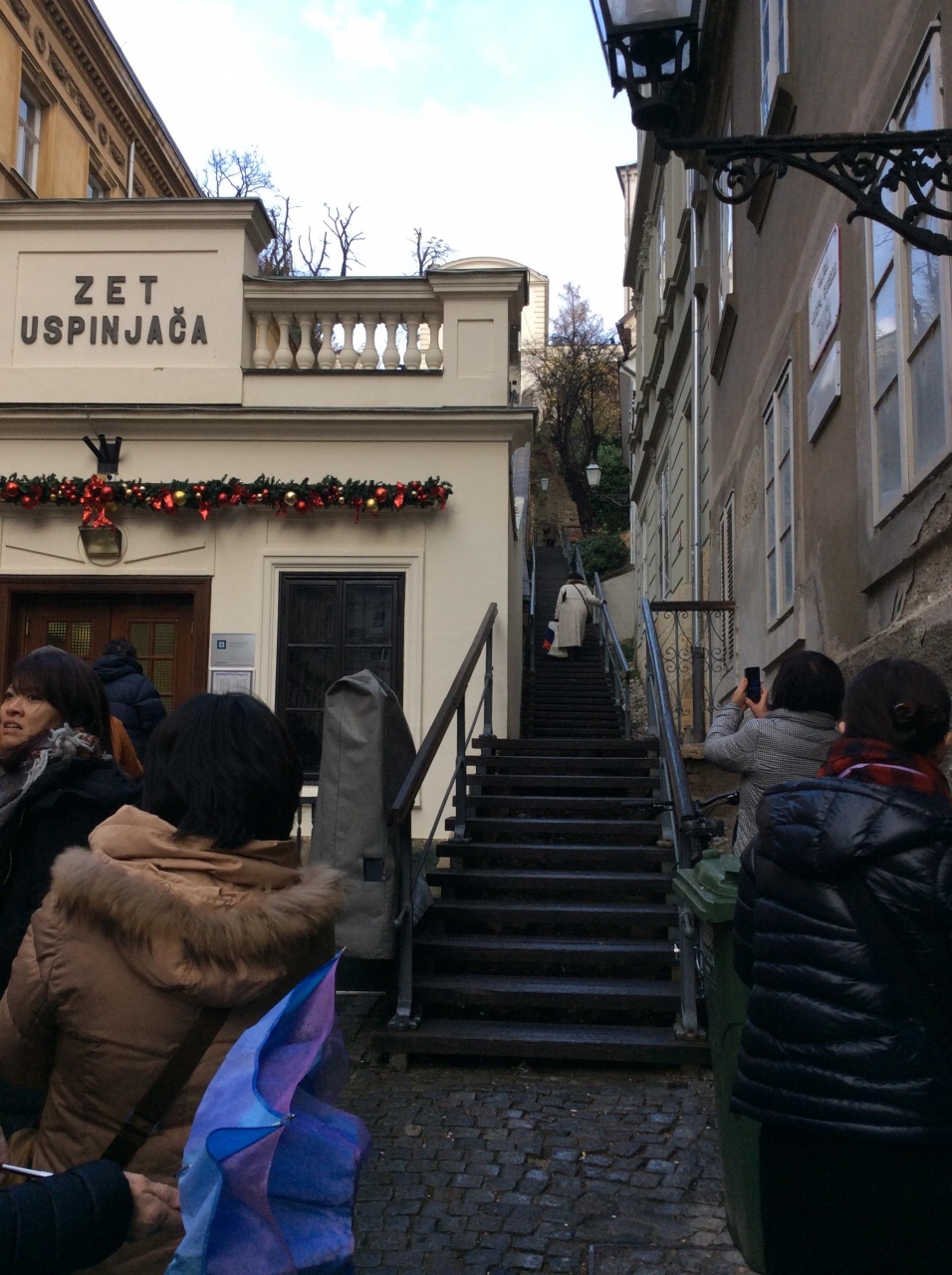 ザグレブのケーブルカーでウスピニャチャ駅が頂上にあります。と、言っても高低差は20メートルでケーブルの全長距離は66メートルだそうです。クロアチア語でケーブルカーのことをウスピニャチャと呼ぶようです。料金は4クーナ日本円で70円です。私たちは団体観光でしたが観光バスを降りてケーブルカーに乗り込みました。