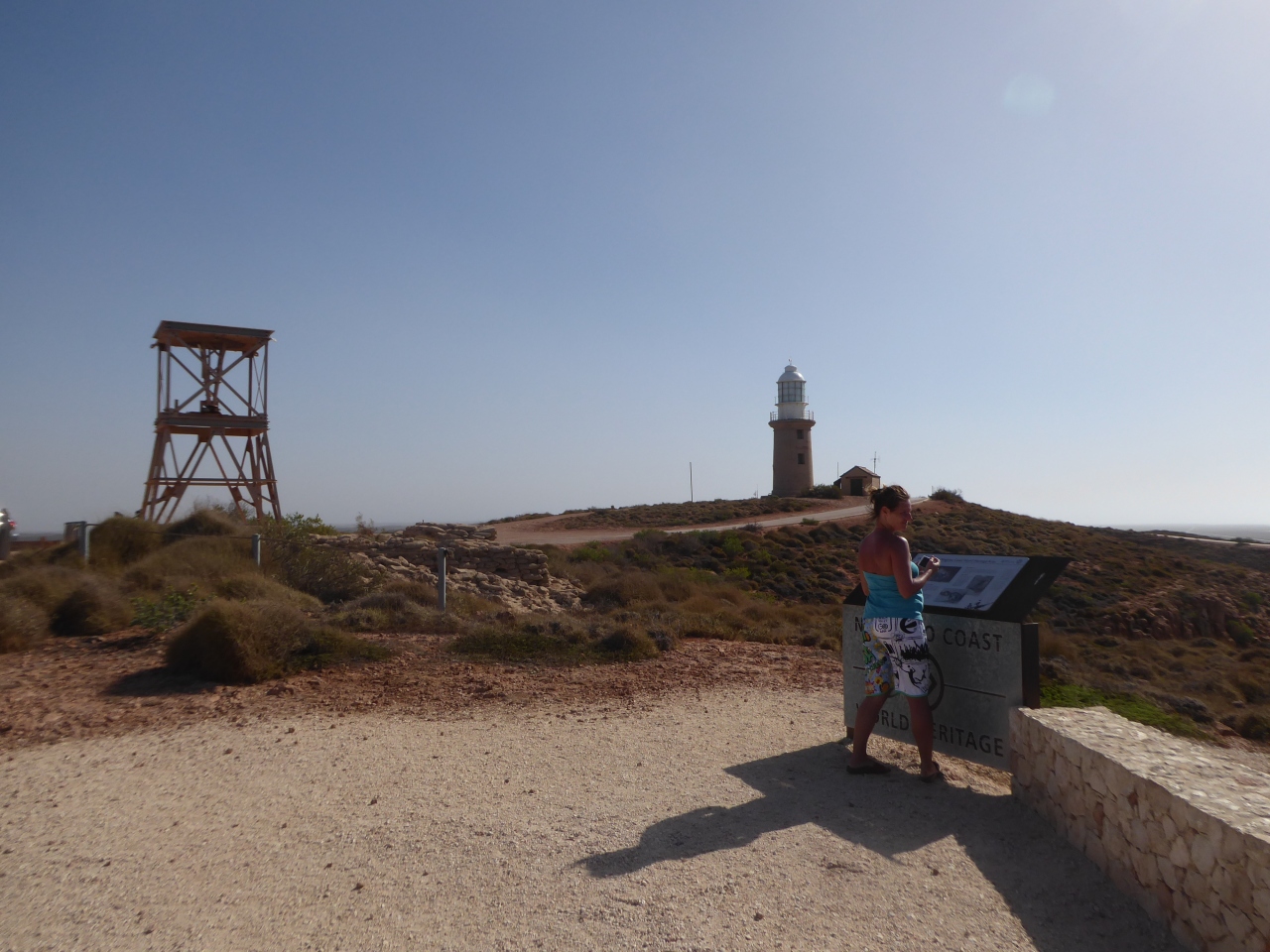 エクスマウスに宿泊しましたので、ついでに半島の先端まで行ってみました。車で20分程かかりました。高台に灯台がありました。ブラミンフ岬灯台です。灯台の直下まで道路が整備されていました。灯台の他に第2次世界大戦当時および冷戦時代に建設された通信関連施設も残されています。灯台が立っている場所では360度の展望が広がっており、半島の海岸線を眺めることが出来ました。このニンガルー・コーストは世界遺産に登録されています。