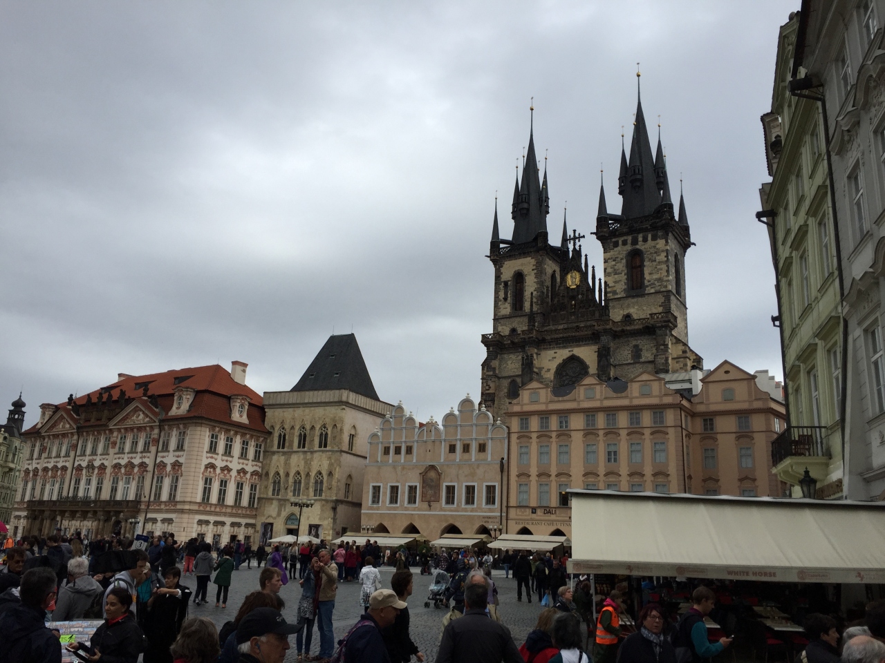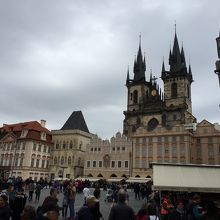 旧市街広場の東側「キンスキー宮殿」と「ティーン教会」の間に挟まれ、ひっそりと建つ縦長の建物が石の鐘の家です。何とも独特な建物です。初期ゴシック建築の建造物として、現在はアートギャラリーとなっています。