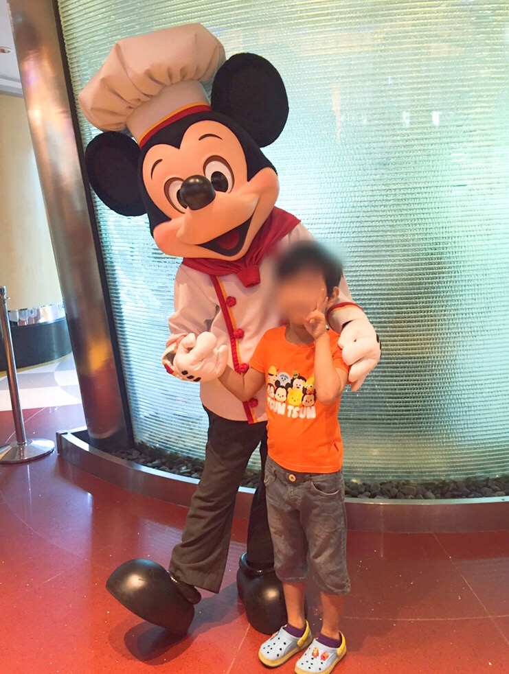 ミッキーが座席に来てくれるのではなく、入り口付近に立っているので、そこに並んでミッキーと写真を撮れます。