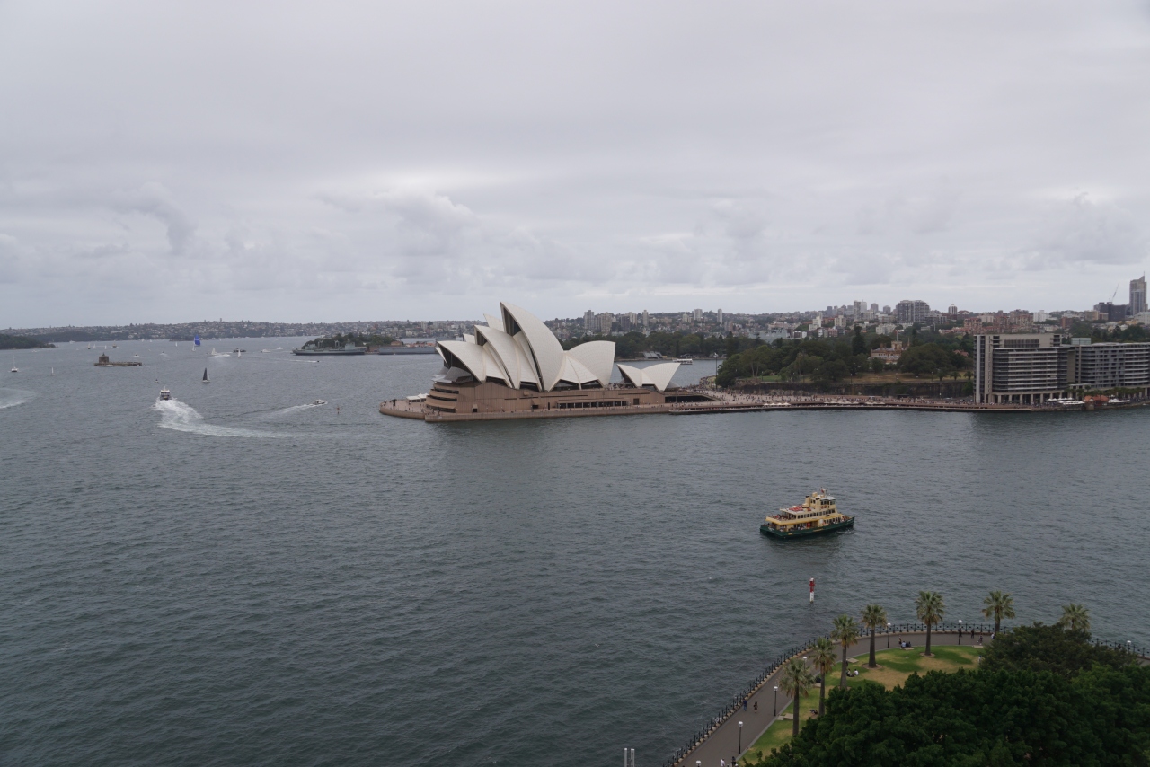 サーキュラーキーからは、ロックス地区を通って徒歩で行きますが、少し行き方が難しく、橋の下の方に向かうと上には上がれませんので注意。橋の途中からの眺めも素晴らしく、オペラハウスを中心に、シドニー湾を見渡す事ができます。パイロンの中は、工事の様子や模型などの展示もあります。海上からの高さは私にとっては結構な高さで、少し足がすくみます。パイロンの上まで上がらなくても、途中の景色でも十分かもしれません。
