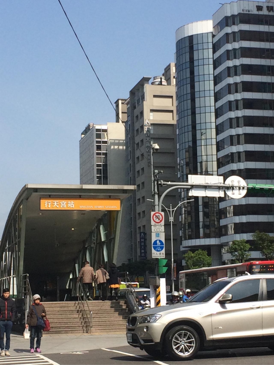 出口によっては とても行天宮から遠くなる気がしました。地下のMRT地図をちゃんと確認してからのほうが良いです。黄色い線で台北にも連結している線の駅です。行天宮の向かいに本屋とレストランカフェがあり、駅付近は充実しています