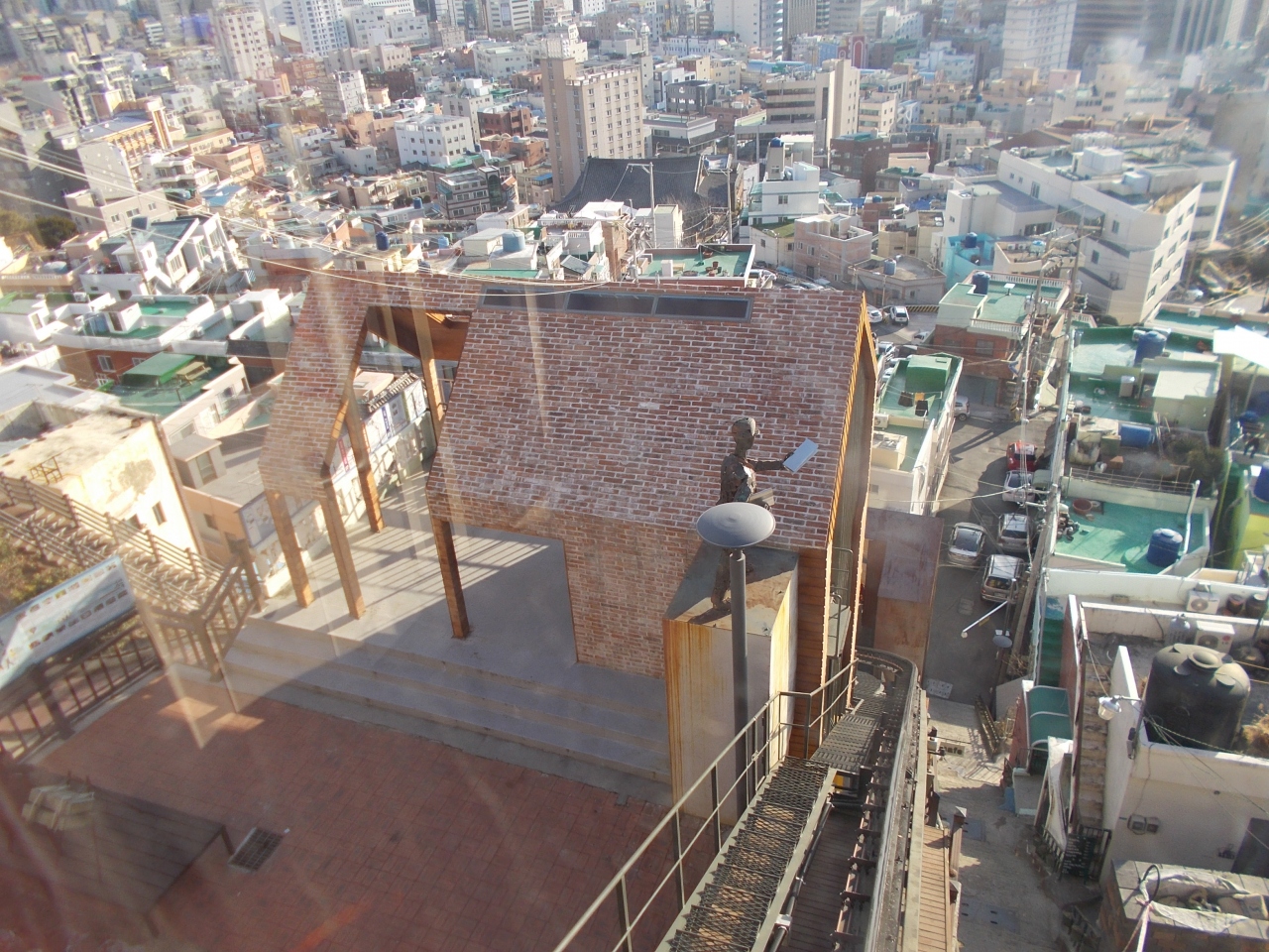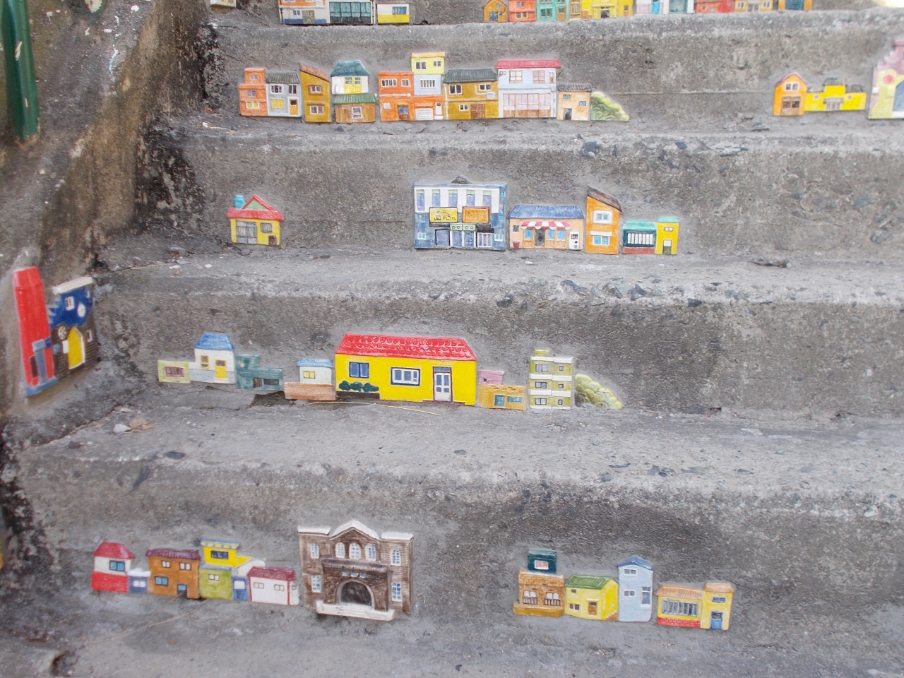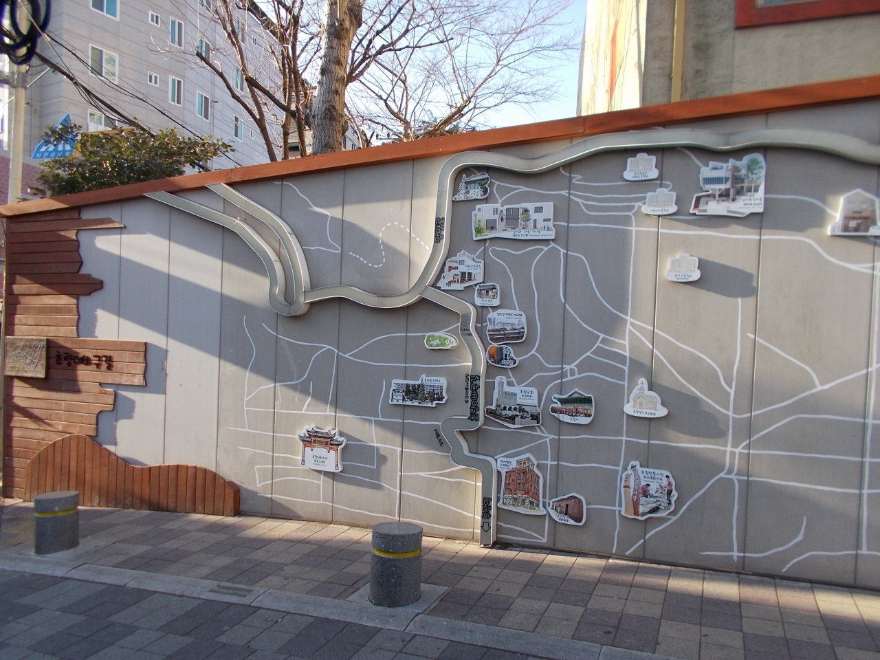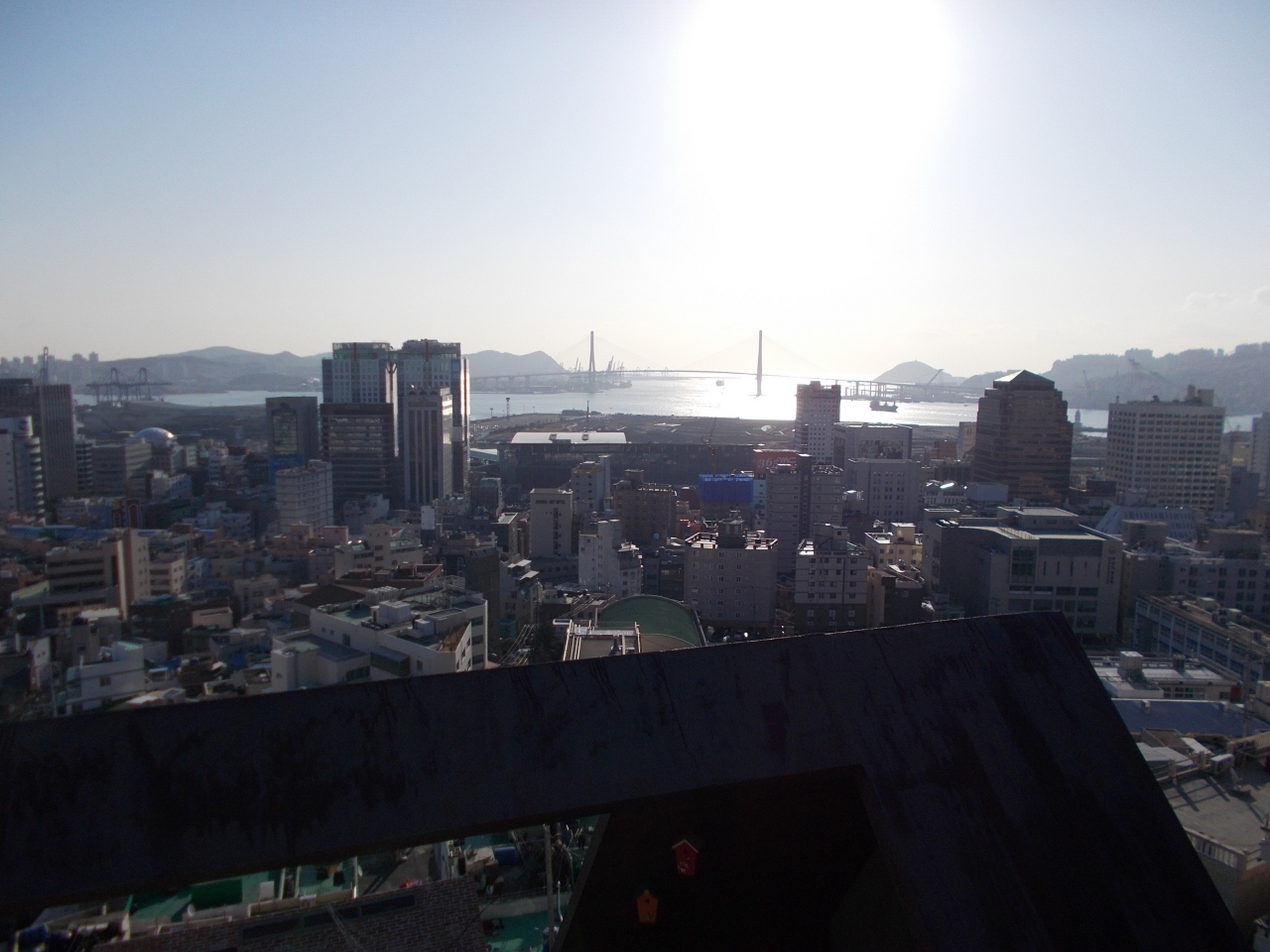 釜山駅の山側を登ったところに168階段があります。この階段、私は登りがおすすめに思います。階段の中心ぐらいの階段にかわいい家のイラストが書かれています。下りだとその絵は振り返って見るようになります。そして、下りは、階段のたいへんの人のために、エレベータのようなモノレールがあります。せっかくなので乗ってみるのもよいと思います。
