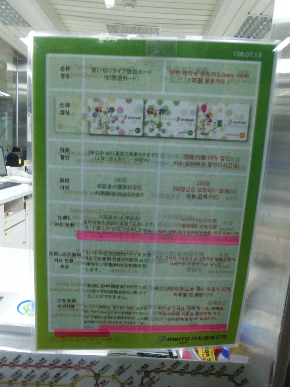MRTの窓口でNT$100でカードを購入。