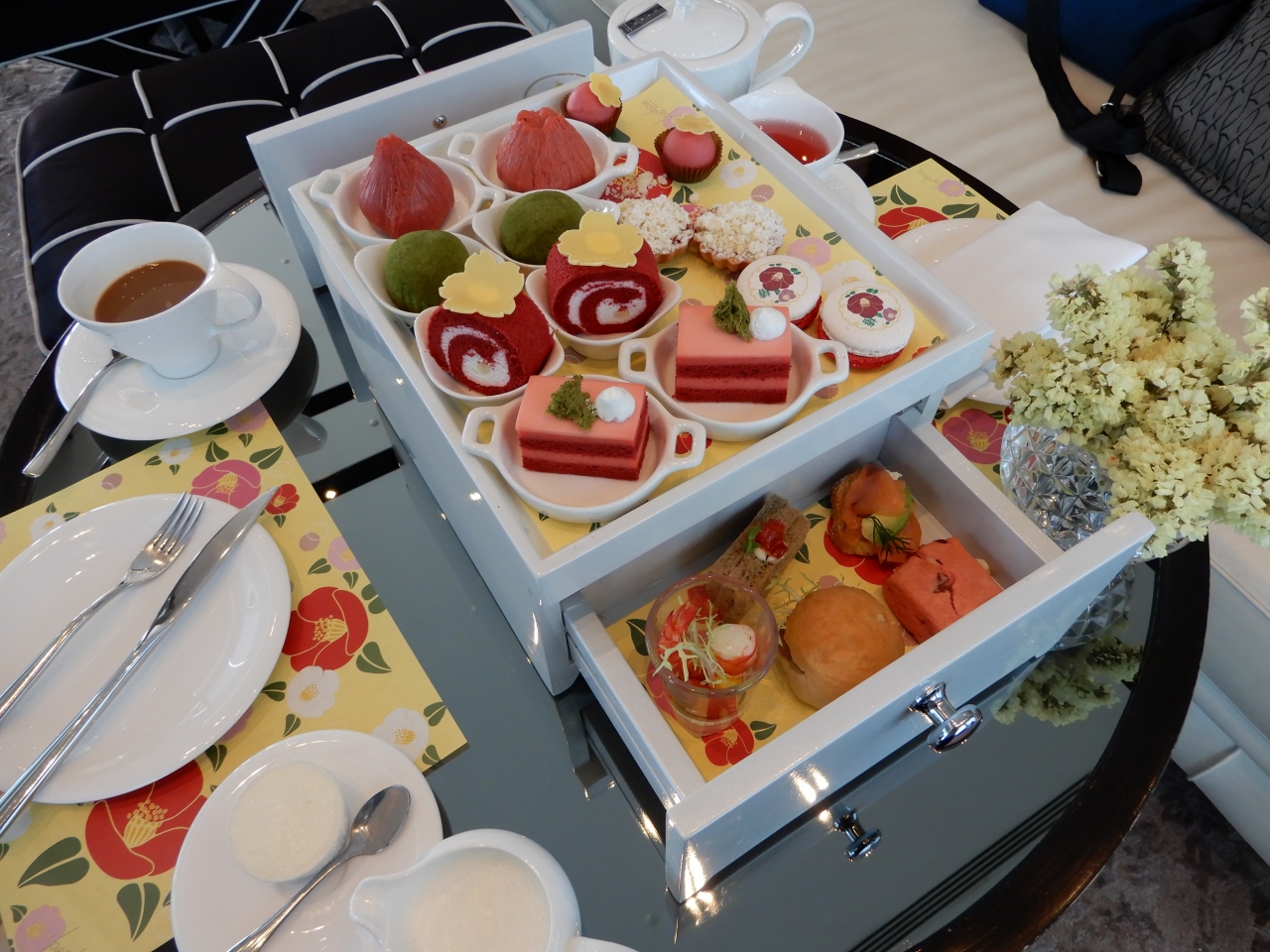 オークラプレステージバンコクの24階にあります。アフタヌーンティーが人気で、2018年3月までは椿がモチーフ。和のテイストも盛り込んだ華やかなティーセットで心も明るくなり、バンコクで日本の四季を感じました。コーヒー、紅茶つきの他に発砲日本酒やプロセッコ、シャンパンなどアルコールのコースもあるので、お好みに合わせて選択することができます。