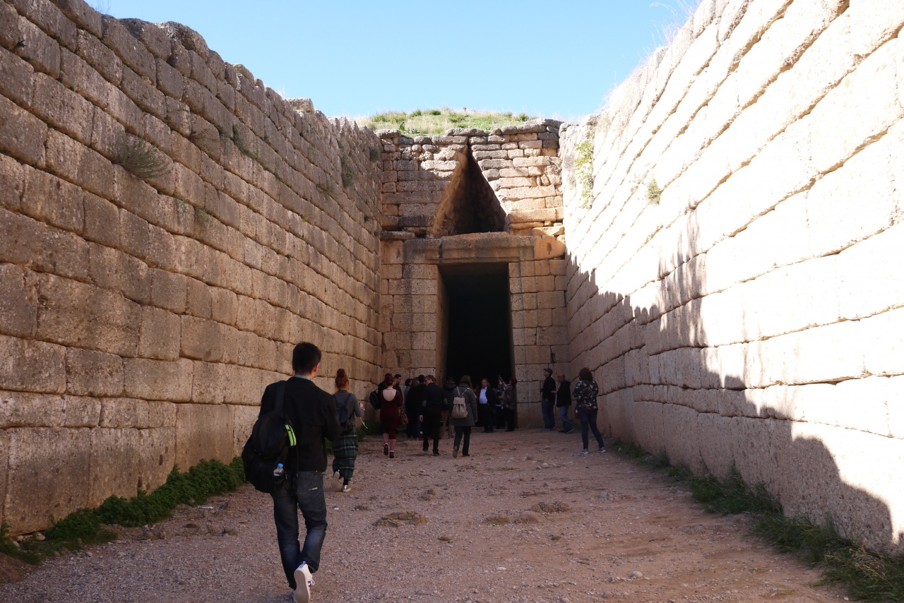 ツアーだったのでバスで移動しましたが、徒歩でも行ける距離です。 入場券はミケーネ遺跡と共通らしく、ミケーネ遺跡の入場券を見せれば入れました。 石を積み重ねたドーム状の建物で見事な石組で見る価値はあります。