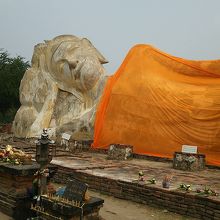 全長30メートル弱ある、巨大な寝釈迦があります。入場無料で、敷地の外からも寝釈迦はよく見えます。