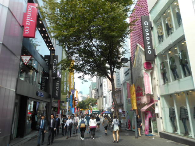 明洞から漢江を渡って、地下鉄3号線の新紗駅で下車すると、街路樹があるので”カロスキル””の通り名が付いている、お洒落なソウルの流行発信地になっているので、洗練されたショツプやレストランがオープンカフェが軒を連ねて、若者に人気のデートスポットエリアだそうです。