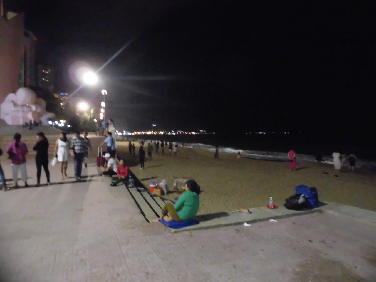 ニャチャンセンターからこちらまで海岸を散歩しながら来ましたが、夜、海岸を散歩している人が多いです。一応、冬にあたる12月で日中は30度くらい、夏はもっと暑いでしょうから、夜、活動している人が多いのでしょう。市場自体はたいしたことはないですが、人でごった返しています。