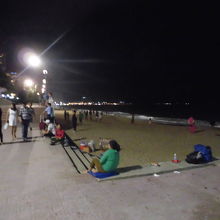 夜、海岸を散歩している人が多い