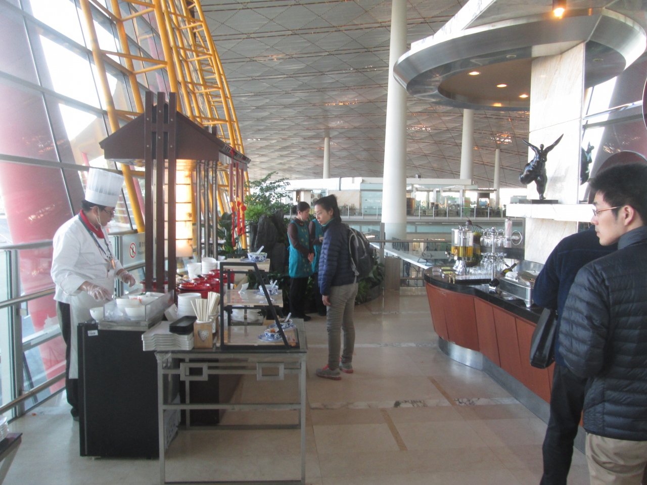 中國国際航空ファーストクラスラウンジにヌードルバーがありました。専属のシェフがいて、その場で麺を茹でてトッピングと出汁をかけてくれるスタイルでした。中国らしい香辛料が置いてあり、辛さも自分で調整できました。機内食ではこういった温かい麺料理は提供されないので嬉しかったです。