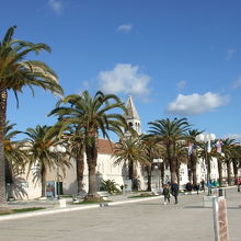 プロムナード沿いに二つの鐘楼が見えます。灰色のがドミニコ会修道院でオレンジのが聖ニコラ修道院。中は博物館になっているようですが、曜日が悪かったのか開いてませんでした。聖ニコラ修道院はあまり目立たない小さな修道院です。でも鐘楼がトロギールらしいオレンジで綺麗です。