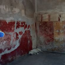 スタビアーネの浴場は、ポンペイのメインストリート、アボンダッツァ通り沿いにあり、ポンペイに3つある浴場のうちで一番保存状態がよいとされ、たいへん良かったでした。浴室は男女別々に分かれてました。6月で日差しが強かったので暑く、犬までも涼しい所を求めて昼寝していました。