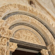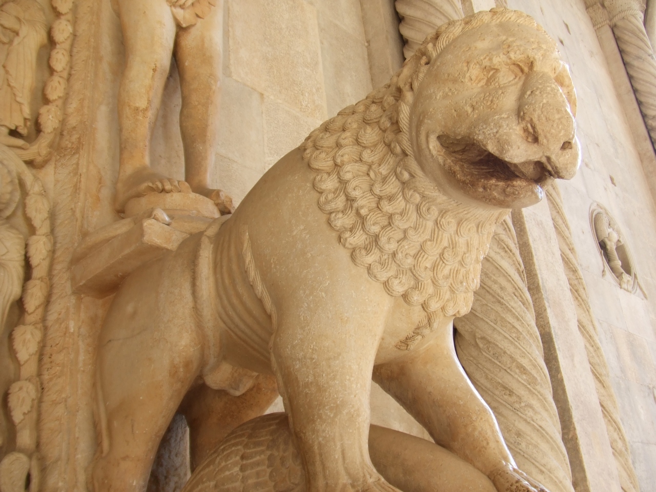 冬季のせいか鐘楼には登れなかったけど、大聖堂の中には入れました。中も立派でしたが、入り口の彫刻が特に素晴らしかったです。中でもライオンの彫像が一番好きです。ちょうど団体ツアーがいくつか到着したところだったので、大聖堂の中も周辺も人がいっぱいでした。