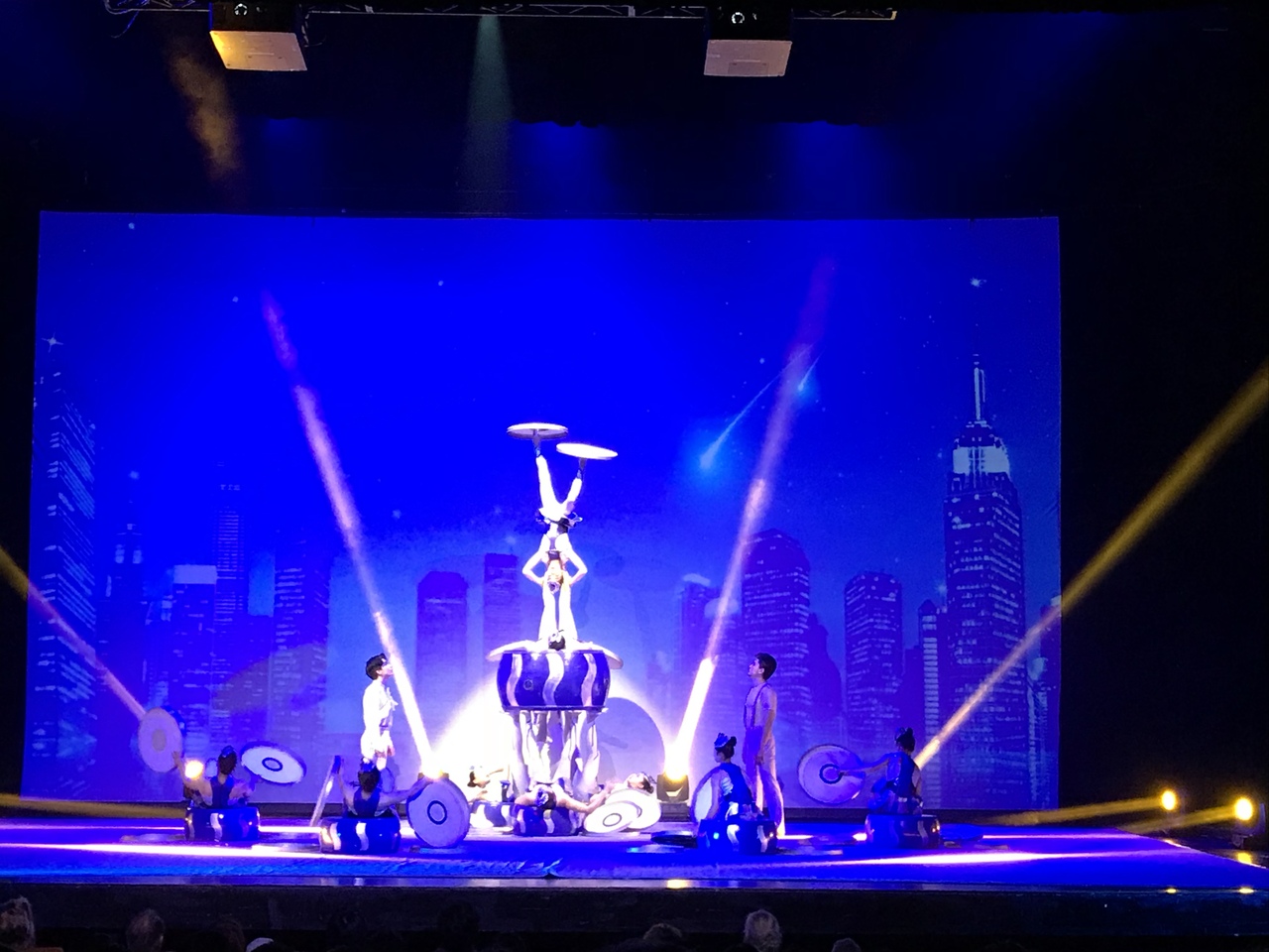 リッツ・カールトンの一部?にあるため便利のいい場所にあります。演目は小さな技がどんどん出てくるタイプで、体操のオリンピックを見ているような技もあり、皿回しのような演目もあり、ショートで楽しめます。ただ、会場が小さめなのか、大胆な演目はありませんでした。
